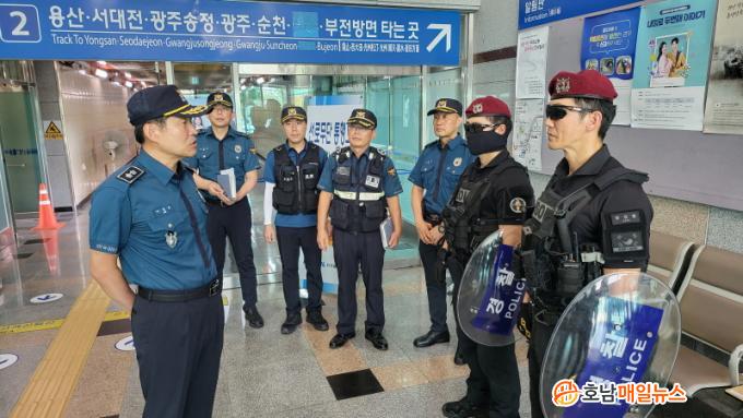 ÀÌÃæÈ£ Àü³²°æÂûûÀåÀº ÇÔÆò¿ª, ³ªÁÖ ÁßÈï°ñµå½ºÆÄ µî ÇöÀåÀ» Á÷Á¢ ¹æ¹®ÇÏ¿© ±Ù¹«ÀÚµéÀ» °Ý·ÁÇÏ°í ¡°±¹¹ÎÀ» ºÒ¾ÈÇÏ°Ô ÇÏ´Â ¹¯Áö¸¶, ¹«Â÷º°½Ä ¡®À̻󵿱â¹üÁË¡¯¿¡ Àû±Ø ´ëÀÀ ¹× ±¹¹ÎÀÇ ¾ÈÀü È®º¸¸¦ À§ÇØ ÃÖ¼±À» ´ÙÇØ´Þ¶ó.¡±°í ´çºÎÇß´Ù.¾Õ¼ ÀÌ Ã»ÀåÀº 3, 4ÀÏ µµ³» 22°³ °æÂû¼ÀåÀÌ Âü¿©ÇÑ Æ¯º°Ä¡¾ÈȰµ¿À» À§ÇÑ È»óȸÀǸ¦ ¿¬´Þ¾Æ °³ÃÖÇÏ¸é¼ ´ÙÁß¹ÐÁýÁö¿ªÀÇ ¼øÂûÀ» °ÈÇϵµ·Ï Áö½ÃÇß´Ù.