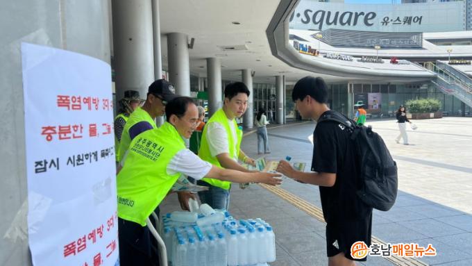 Ä·ÆäÀÎÀº Áö¿ªÀÚÀ²¹æÀç´Ü¿¬ÇÕȸ¿Í ±¤Áֽà ½Ã¹Î¾ÈÀü½Ç °ø¹«¿ø µî 30¿© ¸íÀÌ Âü¿©, ´ÙÁß ÁýÇÕÀå¼ÒÀÎ À¯½ºÄù¾î¸¦ ¿À°¡´Â ½Ã¹ÎÀ» ´ë»óÀ¸·Î ÁøÇàµÆ´Ù. ƯÈ÷ ÇÏ·ç Áß Ã¼°¨¿Âµµ°¡ °¡Àå ³ôÀº ¿ÀÈÄ 2½Ã ¹«´õÀ§·Î ÁöÄ£ ½Ã¹Îµé¿¡°Ô ¾óÀ½»ý¼ö¸¦ ³ª´²ÁÖ¸ç ¿Â¿Áúȯ ¿¹¹æ¿¡ ¼öºÐ °ø±ÞÀÇ Á߿伺À» ¾Ë¸®°í Æø¿° ´ëºñ Çൿ¿ä·ÉÀ» È«º¸Çß´Ù.