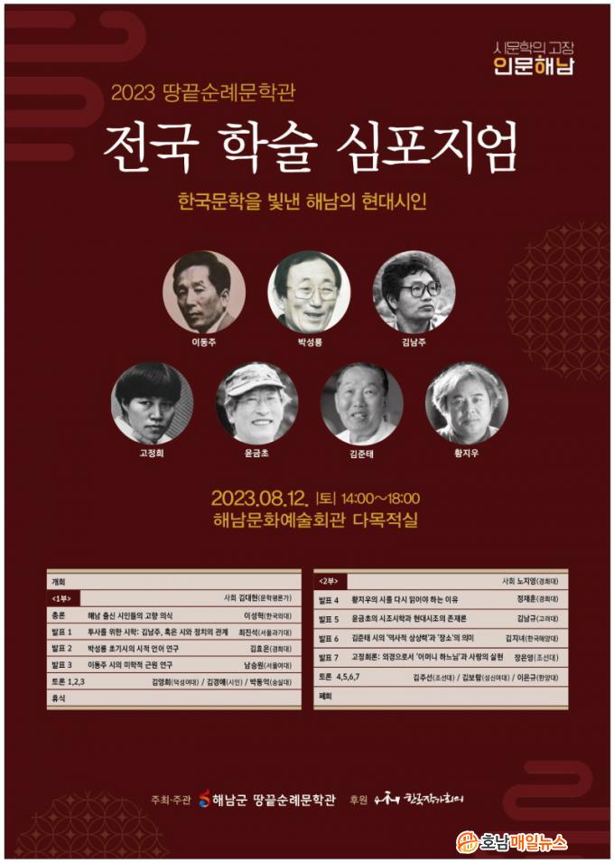 ½ÉÈ£ À̵¿ÁÖ, ³²¿ì ¹Ú¼º·æ, ±è³²ÁÖ, °íÁ¤Èñ, À±±ÝÃÊ, ±èÁØÅÂ, ȲÁö¿ì ½ÃÀÎ µî Çö´ë ½ÃÀεéÀ» ÁÖÁ¦·Î, ÇØ³²ÀÇ ¹®ÇÐÀû Á¤Ã¼¼º°ú ±× È帧À» ÃÑüÀûÀ¸·Î °íÂûÇÏ´Â ¿¬±¸¹ßÇ¥°¡ À̾îÁø´Ù.