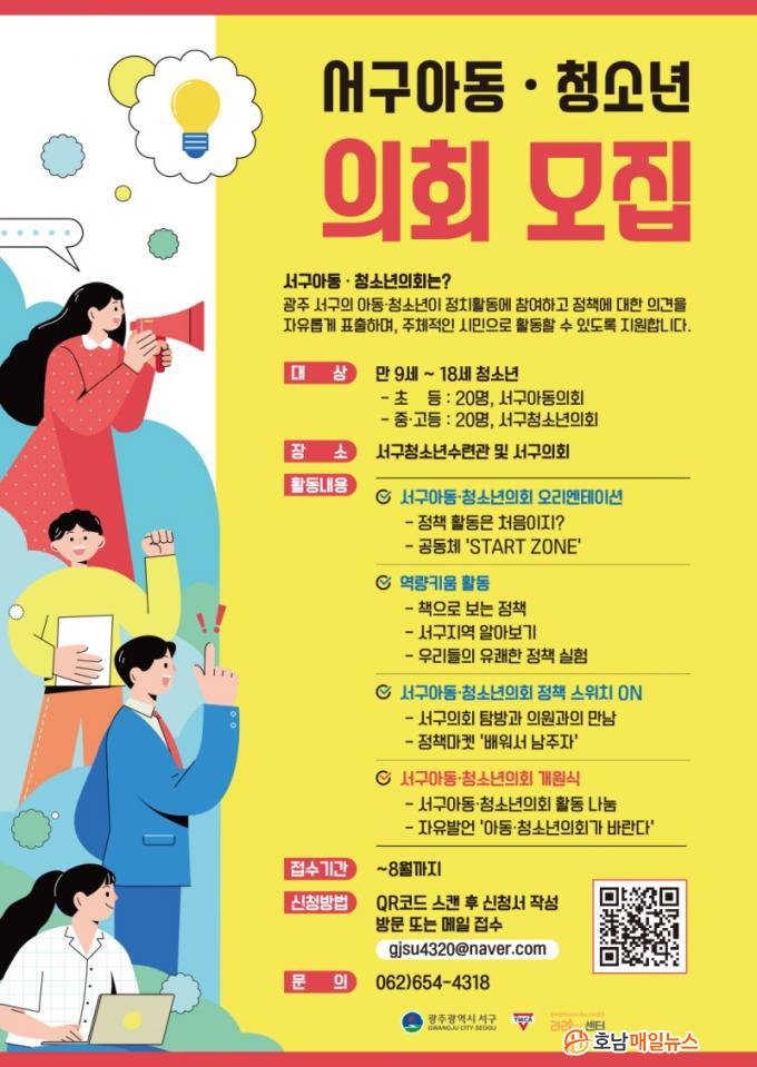 À̹ø ¼±¸¾Æµ¿¡¤Ã»¼Ò³âÀÇȸ´Â ±¤ÁÖ ¼±¸ÀÇ ¾Æµ¿¡¤Ã»¼Ò³âÀÌ Á¤Ä¡È°µ¿¿¡ Âü¿©Çϰí Á¤Ã¥¿¡ ´ëÇÑ ÀǰßÀ» ÀÚÀ¯·Ó°Ô Ç¥ÃâÇϸç, ÁÖüÀûÀÎ ½Ã¹ÎÀ¸·Î Ȱµ¿ÇÒ ¼ö ÀÖµµ·Ï Áö¿øÇÏ´Â ¿ªÇÒÀ» Çϸç, ¡ã¼±¸¾Æµ¿ÀÇȸ(20¸í) ¡ã¼±¸Ã»¼Ò³âÀÇȸ(20¸í)À» ¸ðÁýÇÑ´Ù.