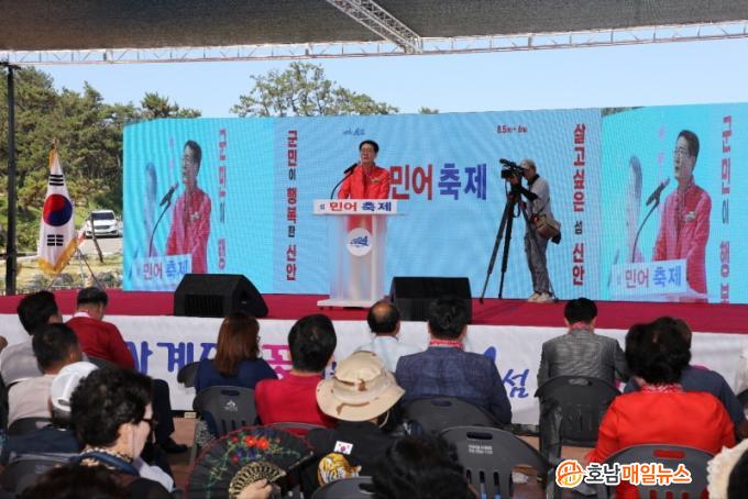 ¹Ú¿ì·® ½Å¾È±º¼ö´Â ¡°½Å¾È ÀÓÀÚ ÇØ¿ª¿¡¼ ÀâÈ÷´Â ¹Î¾î´Â Àü±¹ÀÇ ¹Ì½Ä°¡µéÀÌ ¸ÀÀ» º¸°í ½Í¾î ÇÏ´Â ½Å¾ÈÀÇ ÁÖ¿ä ¼ö»ê¹°·Î Áß¿äÇÑ »ó¡ Áß Çϳª¡±À̸ç, ¡°À̹ø¿¡ ¿¸®´Â ÃàÁ¦¿¡¼ ½Å¾È ¹Î¾î¸¦ ¸Àº¸°í µå³ÐÀº ÀÓÀÚ ´ë±¤Çغ¯À» º¸¸ç Àá½Ã³ª¸¶ °ü±¤°´µéÀÇ ´õÀ§¸¦ ½ÄÈ÷´Â ½Ã°£À» °¡Áö½Ã±æ ¹Ù¶õ´Ù¡±¶ó°í ¸»Çß´Ù.