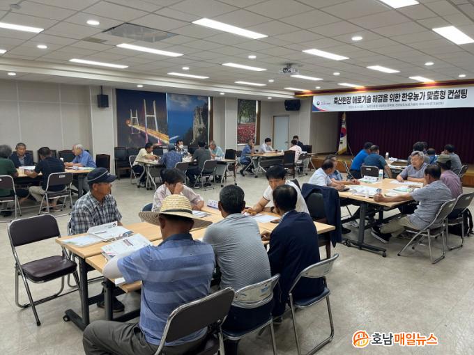 8ÀÏ ½Ã¿¡ µû¸£¸é Áö³ 4ÀÏ ¿©¼ö½Ã´Â ³óÃÌÁøÈïû ±¹¸³Ãà»ê°úÇпø(ÀÌÇÏ Ãà»ê¿ø)°ú ÇÔ²² ³ó¾÷±â¼ú¼¾ÅÍ ±³À°Àå¿¡¼ ÇÑ¿ì³ó¾÷ÀÎ 40¸íÀ» ´ë»óÀ¸·Î Àü¹®°¡ Á¾ÇÕÄÁ¼³ÆÃÀ» ½Ç½ÃÇß´Ù. À̳¯ ±³À°Àº ¼ö¿äÀÚ Á᫐ Ãà»ê ½Å±â¼ú È®»ê°ú ¾Ö·Î±â¼ú ÇØ°á·Î ³ó°¡¼Òµæ Çâ»óÀ» ¸ñÀûÀ¸·Î Ãà»ê°æ¿µ°ú ÇÑ¿ì¹ø½Ä, »ç¾ç°ü¸®, Ãà»êȯ°æ, °¡ÃâÁúº´, »ç·áÀÛ¹° µîÀÇ ºÐ¾ß ´ëÇØ ¸ÂÃãÇü ÄÁ¼³ÆÃÀ¸·Î ÁøÇàµÆ´Ù.
