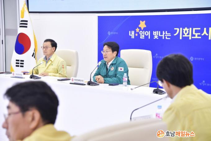 °±âÁ¤ ±¤ÁÖ±¤¿ª½ÃÀåÀº 8ÀÏ ¿ÀÈÄ ½Ãû Ãæ¹«½Ã¼³¿¡¼ ÅÂdz ´ëºñ»óȲ ±ä±ÞÁ¡°ËȸÀǸ¦ ÁÖÀçÇϰí 5°³ ÀÚÄ¡±¸¿Í ºÎ¼º° ÁßÁ¡ °ü¸®»çÇ× ¹× ´ëó°èȹÀ» Á¡°ËÇß´Ù.