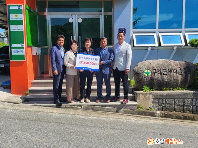 ±¸·Ê±º »õ¸¶À»È¸¿Í ±¸·Ê±º û³â»õ¸¶À»¿¬ÇÕȸ(ȸÀå Á¶Ã¢±Ù)´Â ¹«´õ¿î ³¯¾¾¿¡µµ ¼öÇØ º¹±¸¸¦ À§ÇØ °í»ýÇϽô Áö¿ªÁֹΰú ÀÚ¿øºÀ»çÀÚ¿¡°Ô À§·Î¿Í ÀÀ¿øÀÇ ¸¶À½À» ´ã¾Æ »ý¼ö 145¹Ú½º¿Í À̿ À½·á¼ö 57¹Ú½º(250¸¸ ¿ø »ó´ç)¸¦ Àü´ÞÇß´Ù.