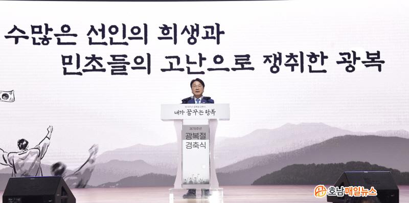° ½ÃÀåÀº À̳¯ ½Ãû ´ëȸÀǽǿ¡¼ ¿¸° Á¦78Áֳ⠱¤º¹Àý °æÃà½Ä¿¡ Âü¼®ÇØ ¡®³»°¡ ²Þ²Ù´Â ±¤º¹¡¯À» ÁÖÁ¦·Î °æÃà»ç¸¦ Çϰí, ¿©ÀüÈ÷ °¢ÀÚÀÇ ¡®±¤º¹¡¯À» ¿Ï¼ºÇϰíÀÚ ¾Ö¾²´Â ÀÏÁ¦°Á¦µ¿¿øÇÇÇØÀÚ¿Í ¼ÈÆÀ» ¹ÞÁö ¸øÇÑ µ¶¸³À¯°øÀÚ µîÀ» Á¶¸íÇß´Ù.