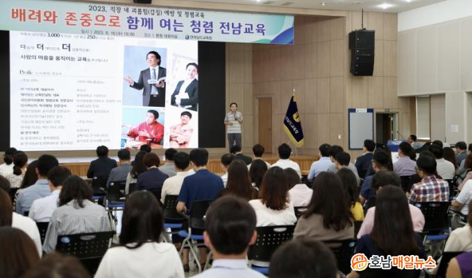 Àü¶ó³²µµ±³À°Ã»Àº °øÁ÷»çȸ¿¡ ¸¸¿¬ÇØ ÀÖ´Â Á÷Àå ³» ±«·ÓÈû(°©Áú)À» ±ÙÀýÇÏ°í ½Å·Ú¹Þ´Â °øÁ÷¹®È¸¦ Á¶¼ºÇϱâ À§ÇØ À̹ø ±³À°À» ÃßÁøÇß´Ù. À̳¯ ÁøÇàµÈ ±³À°Àº ±¹¹Î±ÇÀÍÀ§¿øÈ¸ û·Å±³À° Àü¹®°»çÀÎ ¢ß´õ´õ±³À° Á¤½ÂÈ£ ´ëÇ¥¸¦ ÃÊÃ»ÇØ ¡®°©Áú ±ÙÀý Á¶Ç× Áß½ÉÀ¸·Î »ìÆìº» °øÁ÷ÀÚ Çൿ°·É ¹× Á¶Á÷¹®È °³¼±¡¯À̶ó´Â ÁÖÁ¦·Î ÁøÇàµÆ´Ù.