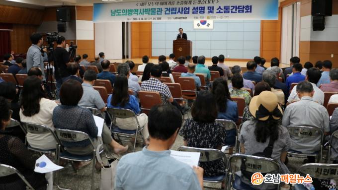 ³ªÁÖ½Ã(½ÃÀå À±º´ÅÂ)´Â Áö³ 14ÀÏ ³ªÁֽùÎȸ°ü¿¡¼ Àü¶ó³²µµ¿Í ÇÔ²² ½Ã¹Î 150¿©¸íÀÌ Âü¼®ÇÑ °¡¿îµ¥ ¡®³²µµÀǺ´¿ª»ç¹Ú¹°°ü °Ç¸³»ç¾÷ ¼³¸í ¹× ¼ÒÅë °£´ãȸ¡¯¸¦ °¡Á³´Ù°í 16ÀÏ ¹àÇû´Ù. °£´ãȸ´Â °ÇÃà½ÃÇà»çÀÇ ³²µµÀǺ´¿ª»ç¹Ú¹°°ü °Ç¸³ °èȹ¹ßÇ¥¸¦ ½ÃÀÛÀ¸·Î »ç¾÷ ÃßÁø °æÀ§, ÁÖ¿ä °ü½É»ç Q&A, ³ªÁֽà ÀÌÇà»çÇ×, ±â´ëÈ¿°ú, ¿¬°è»ç¾÷ ¼³¸í¿¡ À̾î Âü¼®ÀÚ °£ ÁúÀÇÀÀ´äÀÌ ÁøÇàµÆ´Ù.