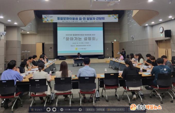 À̳¯ °£´ãȸ´Â Àü¶ó³²µµ ¹®ÈÀç´Ü¿¡¼ ã¾Æ°¡´Â ¼³¸íȸ·Î ÁøÇàµÆÀ¸¸ç, ÅëÇÕ¹®ÈÀÌ¿ë±Ç ¸ÂÃãÇü ±âȹ»ç¾÷ ¹× Ȱ¼ºÈ¸¦ À§ÇÑ ¹æ¹ý°ú ½ÇÁ¦ ¾÷¹«Ã³¸®¿¡ ÇÊ¿äÇÑ ³»¿ëÀ¸·Î ´Ù·ï ¾÷¹«¿¡ ´ëÇÑ ÀÌÇØ¸¦ ³ô¿´À¸¸ç, ÅëÇÕ¹®ÈÀÌ¿ë±Ç ÀÌ¿ë·ü ÃßÁø ¾Ö·Î»çÇ×À» ûÃëÇÏ°í »ç¾÷ÃßÁø¿¡ ´ëÇÑ ÀǰßÀ» ³ª´©´Â ½Ã°£À» °¡Á³´Ù.