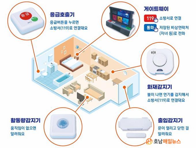 ±âÁ¸ ÀÀ±Þ¾ÈÀü¾È½É¼ºñ½º´Â Ȧ¸ö ¾î¸£½Å °¡Á¤¿¡ Á¤º¸Åë½Å±â¼ú(ICT) ±â¹Ý Àåºñ¸¦ ¼³Ä¡Çß´Ù. ÀÀ±ÞÈ£Ãâ±â, °ÔÀÌÆ®¿þÀÌ, ÈÀ硤Ȱµ¿·®¡¤ÃâÀÔ °¨Áö±â·Î ±¸¼ºµÈ Àåºñ´Â, °¡Á¤¿¡ ÈÀç°¡ ¹ß»ýÇϸé 119¿¡ ÀÚµ¿ ½Å°íÇϵµ·Ï ¼³°èµÆ´Ù.