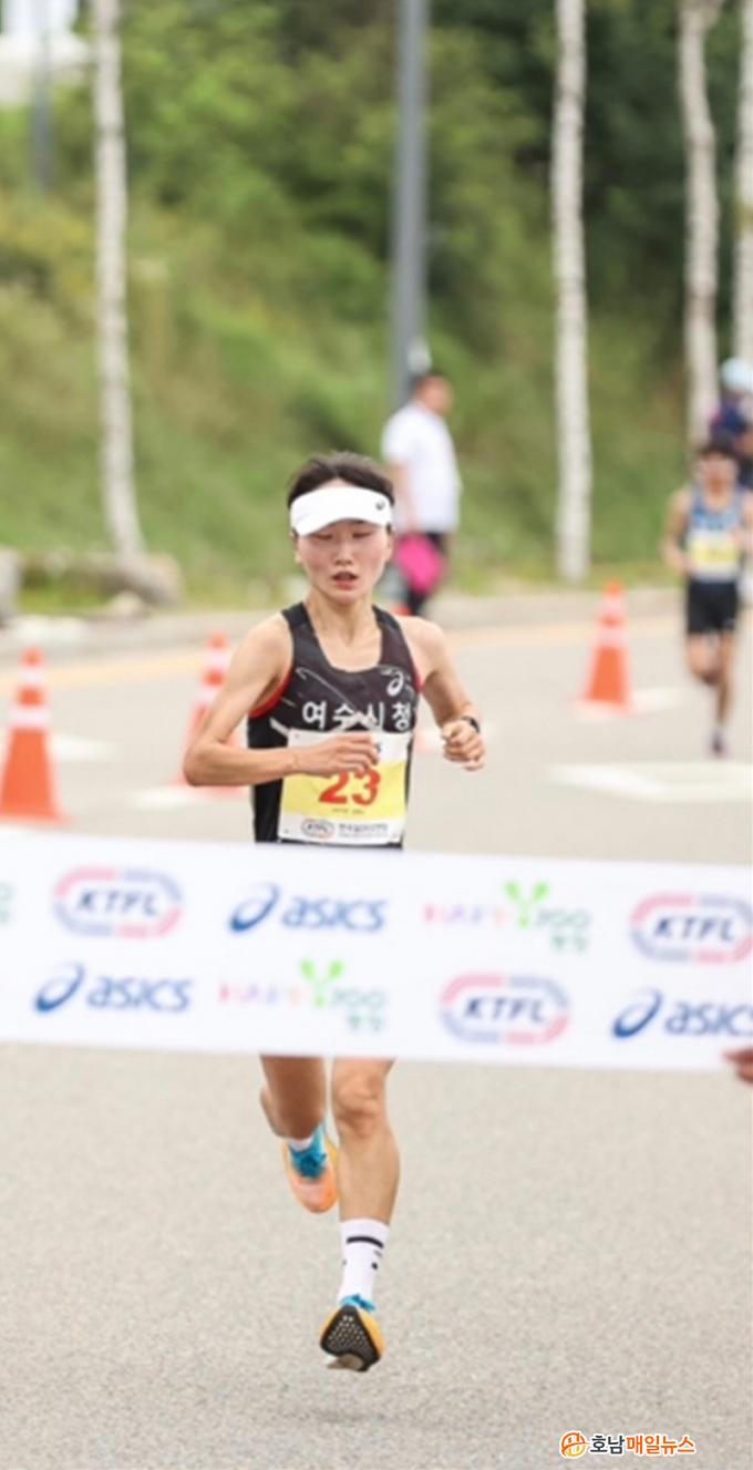 ¿©¼ö½Ã¿¡ µû¸£¸é Áö³ 20ÀÏ °¿øµµ Æòⱺ ´ë°ü·É¸é ÀÏ¿ø¿¡¼ ¿¸° ¿©ÀںΠÇÏÇÁ¸¶¶óÅæ (21.0975km)°³ÀÎÀü¿¡¼ ±è ¼±¼ö´Â 1½Ã°£17ºÐ17ÃÊÀÇ ±â·ÏÀ¸·Î Á¦ÀÏ ¸ÕÀú °á½Â¼±À» Åë°úÇß´Ù.
