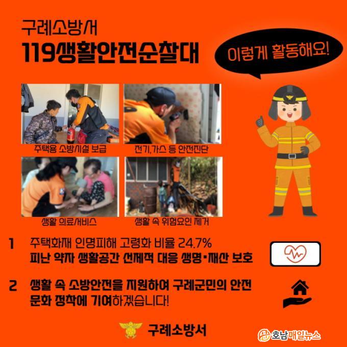 119»ýȰ¾ÈÀü¼øÂû´ë´Â ±¸Á¶¡¤ ±¸±Þ µî Àü¹®ÀÚ°ÝÀ» °®Ãá ¼Ò¹æ´ë¿øÀÌ Àç³ Ãë¾à°èÃþ(±âÃÊ»ýȰ¼ö±ÞÀÚ, µ¶°Å³ëÀÎ, Àå¾ÖÀÎ, ÇѺθð°¡Á¤ µî)À» ´ë»óÀ¸·Î ¡ãÁÖÅÃ¿ë ¼Ò¹æ½Ã¼³ º¸±Þ¡¤Á¤ºñ ¡ãÈÀç À§Çè ¿ä¼Ò Á¦°Å¸¦ À§ÇÑ Àü±â¡¤°¡½º ¾ÈÀüÁø´Ü ¡ãÃë¾à°èÃþ ¸ÂÃã »ýȰÀǷἺñ½º ¡ã»ýȰ ¼Ó ºÒÆí ÇØ¼Ò µî »ýȰ¹ÐÂøÇü ¼Ò¹æ ¾ÈÀü ¼ºñ½º¸¦ Á¦°øÇÑ´Ù.