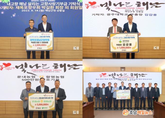 Áö³ 8¿ù 14ÀÏ Àç¸ñÆ÷ÇØ³²Çâ¿ìȸ(ȸÀå ¹Ú±æÈ¯)¿¡¼ °íÇâ»ç¶û±âºÎ±Ý 200¸¸¿øÀ» ±âŹÇß´Ù. À̹ø ±âºÎ´Â Áö³ 4¿ù 1,210¸¸¿ø¿¡ ÀÌ¾î µÎ ¹øÂ°·Î, °íÇâ ¹ßÀüÀ» À§ÇÑ Çâ¿ìȸ¿øµéÀÇ Á¤¼ºÀ» ´Ù½ÃÇѹø ¸ð¾Ò´Ù.