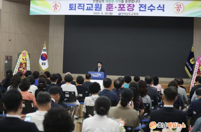 ÇÑÆí, ±è´ëÁß ±³À°°¨Àº ¿µ¿¹·Î¿î ÈÆ․Æ÷ÀåÀ» ¹ÞÀº ¼ö»óÀÚ¿Í °¡Á·µé¿¡°Ô ±×µ¿¾ÈÀÇ Çå½Å°ú ³ë°í¿¡ Á¸°æ°ú °¨»çÀÇ ¸¶À½À» ÀüÇϸç, ¡°Àλý ÈĹÝÀüÀÇ Ãâ¹ßÀ» ÃàÇÏÇÏ°í ¾ÕÀ¸·Îµµ ¡®Àü³²±³À° ´ëÀüȯ¡¯ÀÇ ±æ¿¡ ¼±¹è ±³À°ÀÚµéÀÇ °æ·û°ú ÁöÇý¸¦ º¸ÅÂÁÙ °Í.¡±À» ´çºÎÇß´Ù.
