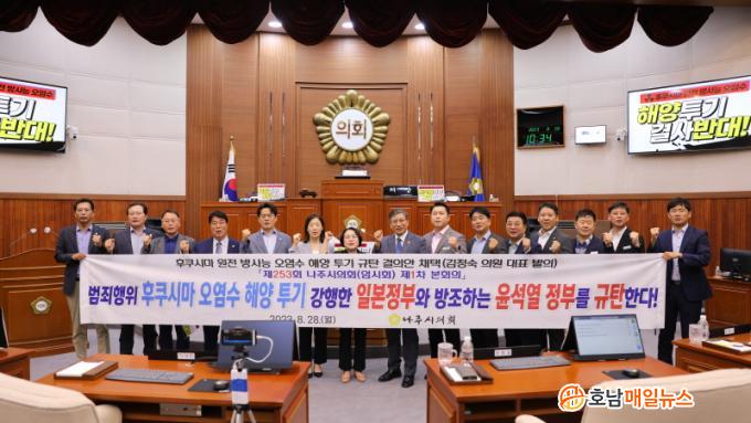 ³ªÁÖ½ÃÀÇȸ´Â Áö³ 8¿ù 24ÀÏ ¿ÀÈÄ 1½Ã°æ ÀϺ» Á¤ºÎ°¡ ÈÄÄí½Ã¸¶ ¿øÀü ¹æ»ç´É ¿À¿°¼ö ÇØ¾ç Åõ±â¸¦ °ÇàÇÏÀÚ ¡®ÈÄÄí½Ã¸¶ ¿øÀü ¹æ»ç´É ¿À¿°¼ö ÇØ¾ç Åõ±â ±Ôź ¼º¸í¼¡¯¸¦ ±ä±Þ ¹ßÇ¥ÇÑ µ¥ À̾î, ±èÁ¤¼÷ ÀÇ¿øÀÌ ´ëÇ¥¹ßÀÇÇØ ¹ÝÀηûÀû ¹üÁËÇàÀ§¸¦ ÀÚÇàÇÑ ÀϺ» Á¤ºÎ¿Í À̸¦ ¹æÁ¶ÇÏ°í ¹«´ÉÇÑ À±¼®¿ Á¤ºÎ¸¦ ±ÔźÇÏ´Â °áÀǾÈÀ» ÀǰáÇß´Ù.