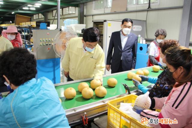 °ÀÎ±Ô ³ªÁÖ½ÃÀåÀº Áö³ 10ÀÏ ¸¶ÇÑ¡¤±Ýõ¡¤ºÀȲ³óÇù ¹è ¼±°úÀåÀ» ¹æ¹®, ÀÛ¾÷ °ü°èÀÚµéÀÇ ³ë°í¸¦ °Ý·ÁÇß´Ù.