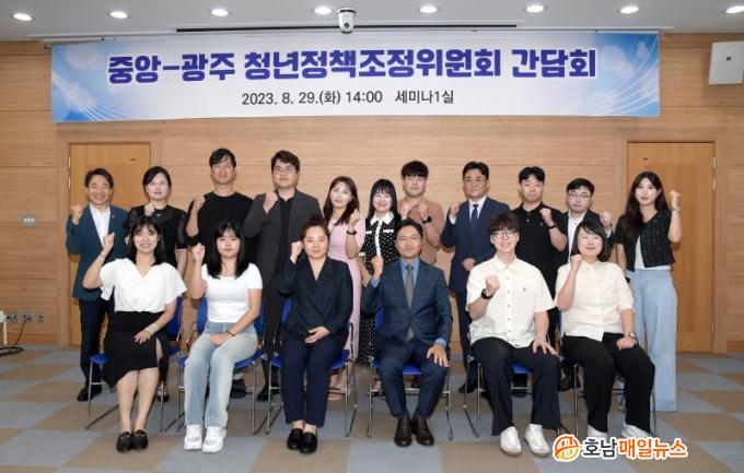 À̳¯ °£´ãȸ´Â û³âÁ¤Ã¥À» ½ÉÀÇ¡¤Á¶Á¤ÇÏ´Â ±¹¹«Á¶Á¤½Ç Áß¾Óû³âÁ¤Ã¥Á¶Á¤À§¿øµéÀÌ ±¤ÁÖÁö¿ª û³âµé°ú ¸¸³ª ±³·ùÀÇ ½Ã°£À» °®°í Áö¿ª û³âÁ¤Ã¥ Ȱ¼ºÈ ¹æ¾ÈÀ» ¸ð»öÇϱâ À§ÇØ ¸¶·ÃµÆ´Ù. °£´ãȸ¿¡´Â Áß¾Óû³âÁ¤Ã¥Á¶Á¤À§¿ø°ú ±¤Áֽà û³âÁ¤Ã¥Á¶Á¤À§¿ø, ±¤ÁÖ½Ãû³âÀ§¿øÈ¸ À§¿øÀå, ±¤ÁÖû³â¼¾ÅÍ ¼¾ÅÍÀå µîÀÌ Âü¼®Çß´Ù.