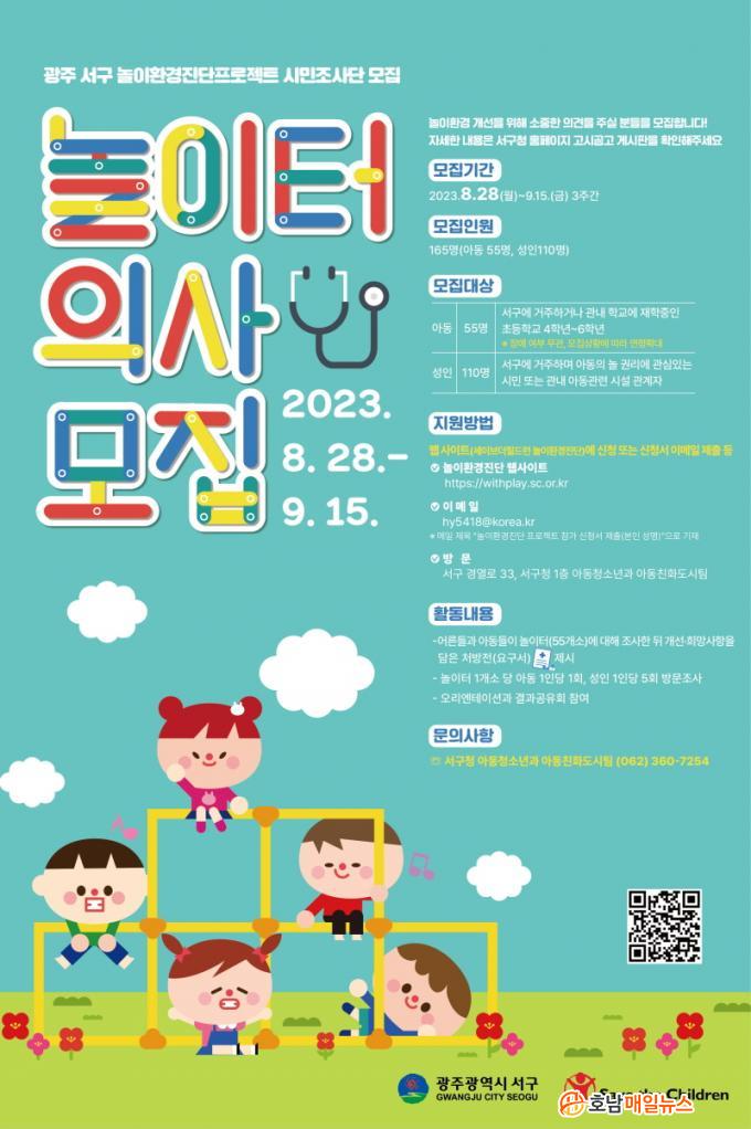 ½Ã¹ÎÁ¶»ç´Ü¡®³îÀÌÅÍ Àǻ硯´Â 9¿ù 23ÀÏ »çÀü±³À°À» ½ÃÀÛÀ¸·Î ¼±¸ °ü³» ¾î¸°À̳îÀÌÅÍ 55°³¼Ò¸¦ ¹æ¹®¡¤Á¶»çÇÑ´Ù. ³îÀÌÅÍ 1°³¼Ò ´ç ¾Æµ¿Àº 1ȸ, ¼ºÀÎÀº 5ȸ ¹æ¹®ÇØ ³îÀÌÅÍÀÇ Á¢±Ù¼º, ȯ°æÇöȲ, ³îÀ̱ⱸ ÇöȲ, ³îÀ̼º µîÀ» Á¶»çÇÏ°í °³¼± ¹× Èñ¸Á»çÇ×À» ´ãÀº ó¹æÀü(¿ä±¸¼)À» Á¦½ÃÇÒ ¿¹Á¤ÀÌ´Ù.