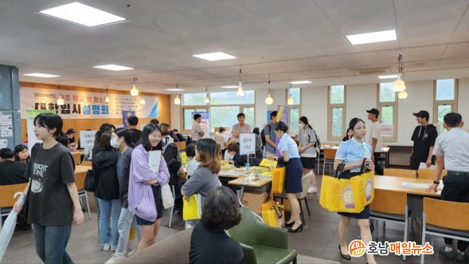 À̹ø ¼³¸íȸ¿¡´Â Àü³²´ë, Á¶¼±´ë µî ±¤ÁÖ±Ç 13°³ ´ëÇÐÀº ºÎ½º¸¦ ¼³Ä¡Çϰí Çб³ ¹Û û¼Ò³â°ú º¸È£ÀÚ, ±×¸®°í °ü·Ã ¾÷¹« ½Ç¹«ÀÚ¿¡°Ô ´ëÇÐ ¹× ÀÔÇÐ, Çаú¿¡ °üÇÑ Á¤º¸¸¦ Á¦°øÇß´Ù. ¶Ç ±¤ÁÖÁø·ÎÁøÇÐÁö¿ø´Ü ´ÜÀå ¼Á¡±Ç ¼³¿ù¿©°í ±³»ç´Â ¡®°ËÁ¤°í½Ã·Î ´ëÇÐ °¡´Â ¹æ¹ý¡¯À» ÁÖÁ¦·Î ¸ÂÃãÇü ´ëÀÔ¼³¸íȸ¸¦ ÁøÇàÇØ À̵鿡°Ô ÀûÇÕÇÑ ÁøÇÐ Á¤º¸¸¦ ÀüÇϱ⵵ Çß´Ù.