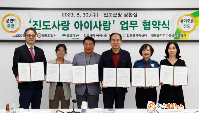 À̳¯ ¾÷¹«Çù¾à½Ä¿¡´Â ¡ãÁøµµ±º ¡ãÁøµµ°æÂû¼ ¡ãÃÊ·Ï¿ì»ê¾î¸°ÀÌÀç´Ü Àü³²Áö¿ªº»ºÎ ¡ãÁøµµ»ç¶û ¾ÆÀÌ»ç¶û ÃßÁø À§¿øÈ¸ ¡ãÁøµµ±º °¡Á·¼¾ÅÍ ¡ãÁøµµ±º Áö¿ª¾Æµ¿¼¾ÅÍ¿±ÇÕȸ µî 6°³ ±â°üÀÌ Âü¿©Çß´Ù.