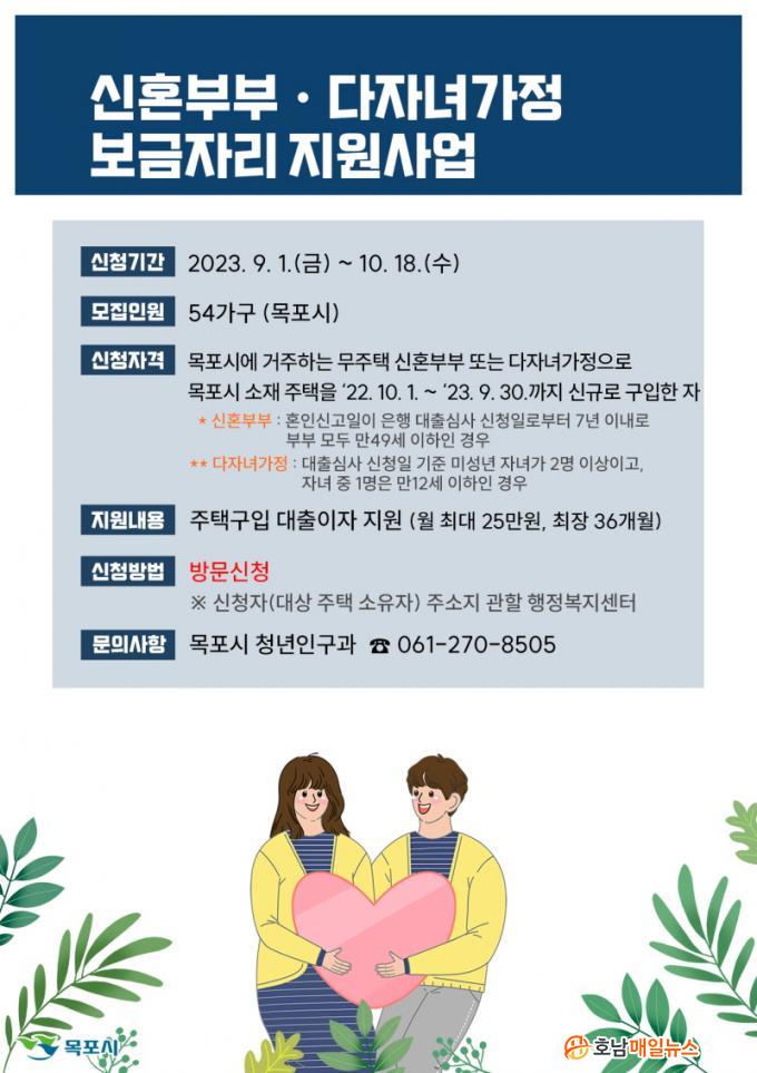 Áö¿ø´ë»óÀº 2022³â 10¿ùºÎÅÍ 23³â 9¿ù±îÁö 6¾ï¿ø ÀÌÇÏÀÇ ¸ñÆ÷½Ã ¼ÒÀç ÁÖÅÃÀ» ±¸ÀÔÇÏ°í °ÅÁÖÁßÀÎ ¹«ÁÖÅà ½ÅÈ¥ºÎºÎ(È¥ÀνŰíÀÏ 7³â À̳»), ´ÙÀڳడÁ¤(¹Ì¼º³âÀÚ³à 2¸í ÀÌ»ó, ÀÚ³àÁß 1¸íÀº ¸¸12¼¼ ÀÌÇÏ)À¸·Î Çѱ¹ ÁÖÅñÝÀ¶°ø»ç µîÀÇ ´ëÃâ½É»ç¸¦ Åë°úÇØ¾ß ÇÑ´Ù. Áö¿øÈñ¸ÁÀÚ´Â ¿À´Â 9¿ù 1ÀϺÎÅÍ 10¿ù 18ÀϱîÁö ½Åû¼¿Í °ü·Ã¼·ù µîÀ» ÁÖ¼ÒÁö °üÇÒ µ¿ÇàÁ¤º¹Áö¼¾ÅÍ¿¡ Á¦ÃâÇÏ¸é µÈ´Ù.