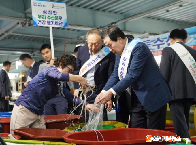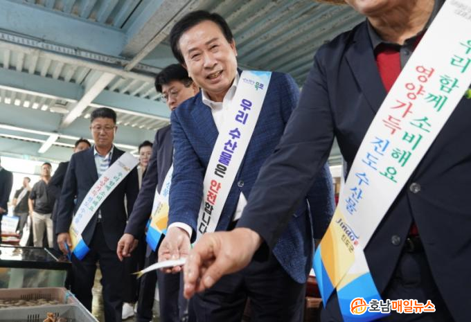 [È£³²¸ÅÀÏ´º½º = ±è±Ý´ö ±âÀÚ] ¸ñÆ÷½Ã(½ÃÀå ¹ÚÈ«·ü)´Â Áøµµ±º(±º¼ö ±èÈñ¼ö), ¸ñÆ÷Áö¹æÇؾç¼ö»êû(ûÀå Á¤¹®¼ö)°ú ÇÕµ¿À¸·Î Áøµµ¼ö»ê½ÃÀåÀ» ¹æ¹®ÇØ ¼ö»ê¹° ¼Òºñ ÃËÁø Ä·ÆäÀÎÀ» Àü°³Çß´Ù.