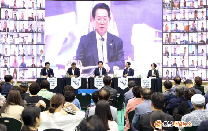 °Áø¿ø °Áø±º¼ö´Â ȯ¿µ»ç¸¦ ÅëÇØ Àü³²Çü 300ÇÁ·ÎÁ§Æ® 330¾ï È®º¸, Áö¿ªÆ¯È ÃàÁ¦, Áö¹æ¼Ò¸ê¿¡ ´ëÀÀÇÑ Àα¸ À¯ÀÔ Á¤Ã¥, ³ó¾÷ÀÇ ¹Ì·¡¸¦ ¼±µµÇØ ³ª°¥ ½º¸¶Æ®ÆÊ È®´ë º¸±Þ µî ¼±Áø ³ó¾÷Á¤Ã¥, Áö¿ª¹ßÀüÀÇ ±Ù°£ÀÎ ´Ù¾çÇÑ SOC È®Ãæ µîÀ» ÅëÇØ ÀÏÀÚ¸®¿Í Àα¸°¡ ´Ã¾î³ª´Â ½Å °Áø½Ã´ë¸¦ ¿¾î °¥ °ÍÀ» ¹àÈ÷¸é¼, À̸¦ À§Çؼ´Â Àü³²µµÀÇ ÀüÆøÀûÀÎ Áö¿øÀ» Åä´ë·Î ÇÑ Àü³²µµ¿Í °Áø±ºÀÇ »ó»ý Çù·ÂÀÌ ÇÊ¿äÇÏ´Ù´Â Á¡À» °Á¶Çß´Ù.