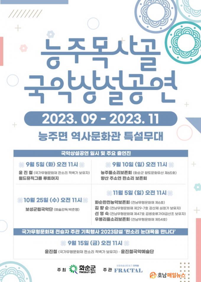 ÆÇ¼Ò¸®·Î´Â À±ÁøÃ¶ ±¹°¡¹«Çü¹®ÈÀç, ±èÇâ¼ø, ¼±¿µ¼÷ Àü³²¹«Çü¹®ÈÀç°¡ °ø¿¬ÇÏ°í ³ó¾ÇÀ¸·Î´Â ȼø±º ÇâÅä¹®ÈÀ¯»êÀÎ ´ÉÁÖµé¼Ò¸®º¸Á¸È¸, Àü³²¹«Çü¹®ÈÀçÀΠȼøÇÑû³ó¾Çº¸Á¸È¸, ¿ìºÀ¸®µé¼Ò¸®º¸Á¸È¸°¡ °ø¿¬À» ÆîÄ£´Ù.