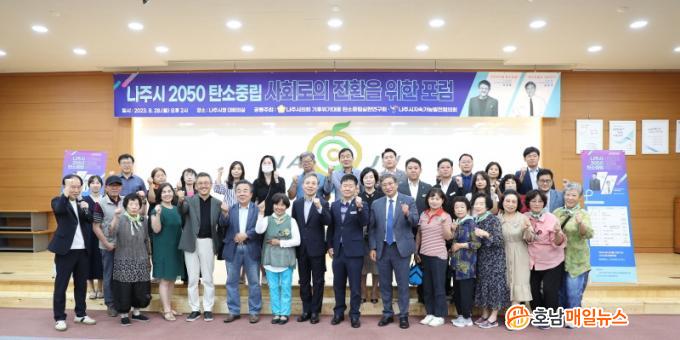 ³ªÁÖ½ÃÀÇ Åº¼ÒÁ߸³»çȸ Á¶±â ½ÇÇöÀ» À§ÇØ ³ªÁÖ½ÃÀÇȸ ±âÈÄÀ§±â ´ëÀÀ ź¼ÒÁ߸³ ½ÇÇö¿¬±¸È¸¿Í ³ªÁÖ½ÃÁö¼Ó°¡´É¹ßÀüÇùÀÇȸ°¡ °øµ¿À¸·Î °³ÃÖÇÑ À̹ø Æ÷·³Àº ³ªÁÖ½ÃÁö¼Ó°¡´É¹ßÀüÇùÀÇȸ Á¤Âù¿ë ȸÀåÀÇ Àλ縻, ³ªÁÖ½ÃÀÇȸ ÀÌ»ó¸¸ ÀÇÀåÀÇ Ãà»ç¿Í ÇÔ²² ¿¬±¸È¸ ȸ¿øÀΠȲ±¤¹Î¡¤ÃÖ¹®È¯¡¤È«¿µ¼·¡¤ÃÖÁ¤±â ÀÇ¿ø µî ³ªÁÖ½ÃÀÇȸ ÀÇ¿ø, ³ªÁÖ½Ãû °ø¹«¿ø, ÀÏ¹Ý ½Ã¹Î µî ¾à 100¿© ¸íÀÌ Âü¼®ÇØ ÀÚ¸®¸¦ ºû³Â´Ù.