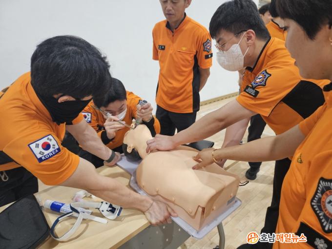 À̹ø Ưº°±³À°ÈÆ·ÃÀº ±¸±Þ´ë¿øÀÇ Àü¹®±â¼ú ½Àµæ°ú ÀÀ±Þóġ ´É·ÂÀ» Çâ»ó½ÃÄÑ º´¿ø ÀÌ¼Û Àü ´Ü°èÀÎ ÇöÀå¿¡¼ ±¹¹Î¿¡°Ô ´õ¿í´õ Áú ³ôÀº ±¸±Þ¼ºñ½º¸¦ Á¦°øÇÒ ¼ö ÀÖµµ·Ï Çϱâ À§ÇÔÀÌ´Ù.ÁÖ¿ä³»¿ëÀº ¡ãÀü¹®½ÉÀå¼Ò»ý¼ú ¡ãÈĵΰæ ÀÌ¿ëÇÑ ±â°ü³» »ð°ü ¡ãÁ¤¸ÆÁÖ»ç IV ÁÖÀÔ ¡ã´Ù¼ö»ç»óÀÚ ±¸±Þ´ëÀÀ ÁßÁõµµ ºÐ·ù µî À̷аú ½Ç½ÀÀ¸·Î ÁøÇàµÇ¾ú´Ù.