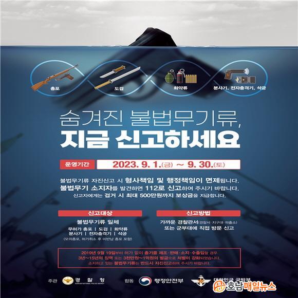 ºÒ¹ý¹«±â·ù ÀÚÁø½Å°í ´ë»óÀº Çã°¡ ¾øÀÌ ¼ÒÁöÇϰí Àְųª ¼ÒÁö Çã°¡°¡ Ãë¼ÒµÈ Ãѱâ, Ⱦà·ù(Ⱦà‧Æø¾à‧½Çź‧Æ÷ź µî), µµ°Ë, ºÐ»ç±â, ÀüÀÚÃæ°Ý±â, ¼®±Ã µî ºÒ¹ý¹«±â·ù ÀÏüÀÌ´Ù.
