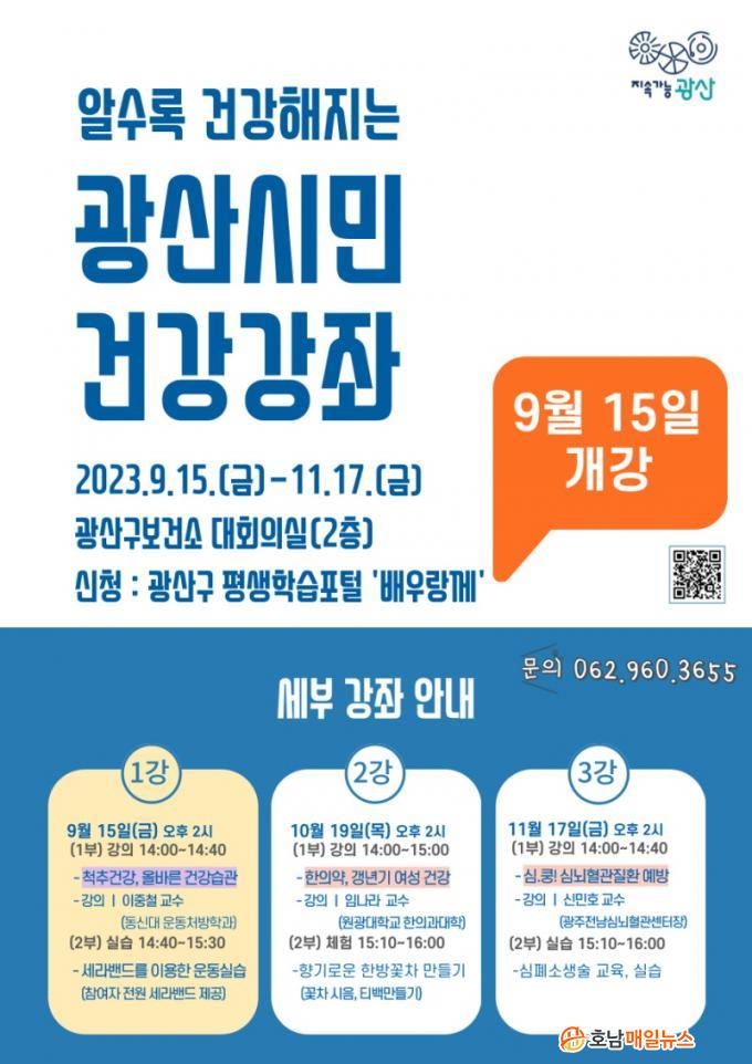 ±³À°¿¡ Âü¿©¸¦ Èñ¸ÁÇÏ´Â ½Ã¹ÎÀº ±¤»ê±¸ Æò»ýÇнÀÆ÷ÅС®¹è¿ì¶û²²¡¯(https://edu.gwangsan.go.kr/)¿¡¼ ½ÅûÇÒ ¼ö ÀÖ´Ù. ÀÚ¼¼ÇÑ ³»¿ëÀº ±¤»ê±¸º¸°Ç¼Ò º¸°ÇÇàÁ¤°ú(062-960-3655)¿¡ ¹®ÀÇÇÏ¸é µÈ´Ù.