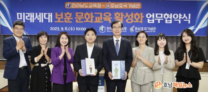 µÎ ±â°üÀº 9¿ù 6ÀÏ(¼ö) Àü¶ó³²µµ±³À°Ã»¿¡¼ ±è´ëÁß ±³À°°¨°ú ÀÌÇü³² È£³²È£±¹±â³ä°üÀåÀ» ºñ·ÔÇÑ °ü°èÀÚµéÀÌ Âü¼®ÇÑ °¡¿îµ¥ ¾÷¹«Çù¾àÀ» ü°áÇϰí, Àü³²ÀÇ ¾ÆÀ̵éÀÌ ³ª¶ó»ç¶û ÀǽÄÀ» °®Ãá ¹Ì·¡ÀÎÀç·Î ¼ºÀåÇÏ´Â µ¥ ÈûÀ» ¸ðÀ¸±â·Î Çß´Ù.