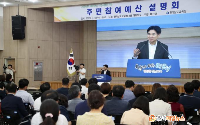 ±è´ëÁß ±³À°°¨µµ À̳¯ ¼³¸íȸ¿¡ Á÷Á¢ Âü¼®ÇØ Àü³²±³À°Á¤Ã¥ ¹× ¿¹»êÆí¼º°ú °ü·ÃÇØ Áֹεé°ú Çã½ÉźȸÇÏ°Ô ´ëȸ¦ ³ª´³´Ù. ±è ±³À°°¨Àº ¡°´õ ³ªÀº ¹Ì·¡¸¦ À§ÇÑ Àü³²±³À° ´ëÀüȯÀÇ ¹ß°ÉÀ½¿¡ ¼Óµµ¸¦ ³ôÀ̱â À§ÇØ ¿¹»êÆí¼º °úÁ¤¿¡¼ºÎÅÍ ÁֹεéÀÇ ¸¹Àº °ü½É°ú Àû±ØÀûÀÎ Âü¿©°¡ ÇÊ¿äÇÏ´Ù.¡±°í °Á¶Çß´Ù.