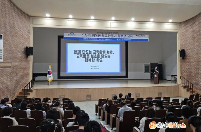 ±³À°Àº 8¿ù 31Àϰú 9¿ù 1ÀÏ, ÀÌÆ²¿¡ °ÉÃÄ ¿Ïµµ»ýȰ¹®È¼¾ÅÍ¿Í ³ëÈÁßÇб³¿¡¼ ÁøÇàµÆÀ¸¸ç, 200¿© ¸íÀÇ Çкθ𰡠Âü¼®Çß´Ù. À̹ø ±³À°Àº Áö³ 7¿ù 26ÀÏ Àü¶ó³²µµ±³À°Ã»°ú ¿Ïµµ±ºÀÇ ¾÷¹« Çù¾à½Ä¿¡¼ ½Å¿ìö ±º¼ö°¡ Á¦¾ÈÇÑ »çÇ×À¸·Î Çб³ ±¸¼º¿ø °£ »óÈ£ Á¸ÁßÇÏ´Â Çб³ ¹®È Á¶¼ºÀ» À§ÇØ ÃßÁøµÆ´Ù.
