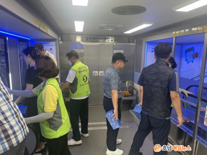 ÈÆ·Ã ³»¿ëÀº ½Â°±âÀÇ »ç°í¡¤°íÀå µîÀ¸·Î ÀÌ¿ëÀÚ°¡ ½Â°±â¿¡ °¤È÷´Â »óȲÀ» °¡Á¤ÇØ ÀÌ¿ëÀÚ¸¦ ±¸Á¶ÇÏ´Â ¸ðÀÇ ±¸Á¶ÈÆ·ÃÀÌ ÀÌ·ç¾îÁ³À¸¸ç, ½Â°±â ¾ÈÀü±³À°À» ÅëÇØ °Ç¹° °ü¸®ÁÖü¿Í Áö¿ªÁֹε鿡°Ô ½Â°±â »ç°í ½Ã ´ëó¿ä·É ¹× »ç°í»ç·Ê µîÀ» ÀüÆÄÇß´Ù. ƯÈ÷ ÈÆ·ÃÀå¿¡ ´ëÇü ½ºÅ©¸°À» ¼³Ä¡ÇØ ½Â°±â ³»¡¤¿ÜºÎ ÈÆ·Ã °úÁ¤ ÁøÇàÀ» º¼ ¼ö ÀÖµµ·Ï ÇØ ½Ç°¨ ³ª´Â ÈÆ·Ã »óȲÀ» ¿¬ÃâÇß´Ù.