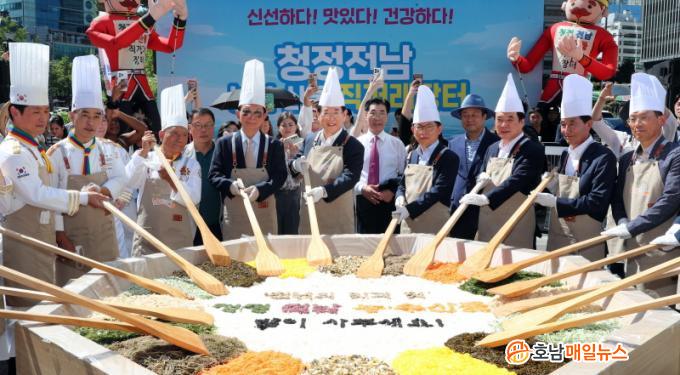 ƯÈ÷ À̹ø Çà»ç¿¡´Â ±è¿µ·Ï Àü³²µµÁö»ç, ³ó¼ö»ê¾÷ »ý»ê‧À¯Åë °ü°èÀÚµé, ÇÑ½Ä ¸íÀåµé·Î ÀÌ·ïÁø (»ç)´ëÇѹα¹ÇÑ½ÄÆ÷·³ ȸ¿øµéÀº Àü³² 22°³ ½Ã±º¿¡¼ »ý»êµÈ ½Ò°ú ³ó¼ö»ê¹°·Î ¸¸µç ºñºö¹äÀ» ¸¸µé¾î ½Ã½ÄÇϸç Àü³² ³ó¼ö»ê¹°À» Àû±Ø È«º¸ÇÏ°í ÆÇÃË¿¡ ÈûÀ» º¸ÅÉ´Ù.