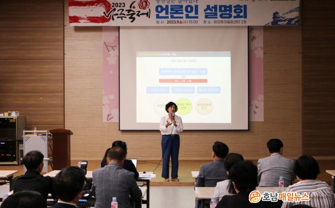 ³ªÁÖ½Ã(½ÃÀå À±º´ÅÂ)´Â Àü³¯ ¿ÀÈÄ 3½Ã ¿µ°µ¿ ¾î¿ï¸²¼¾ÅÍ ´ë°´ç¿¡¼ ÃàÁ¦ÃßÁøÀ§¿øÈ¸ ÁÖ°üÀ¸·Î ¡®2023 ³ªÁÖÃàÁ¦, ¿µ»ê°Àº »ì¾ÆÀÖ´Ù¡¯ ¾ð·ÐÀÎ ¼³¸íȸ¸¦ °¡Á³´Ù°í 7ÀÏ ¹àÇû´Ù.