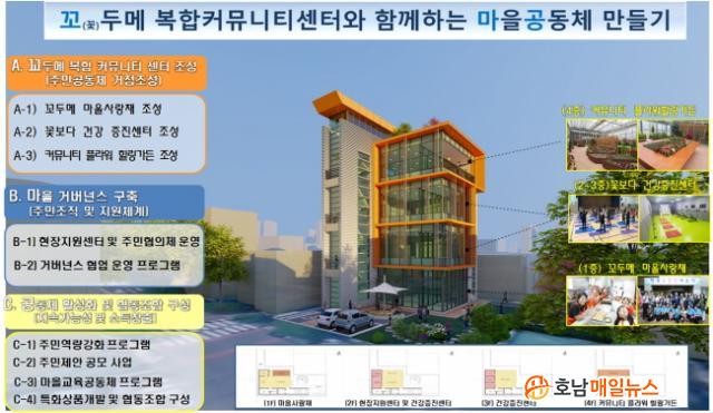 ²¿µÎ¸Þ º¹ÇÕÄ¿¹Â´ÏƼ¼¾ÅÍ´Â ¸¶À»»ç¶ûä, °Ç°ÁõÁø¼¾ÅÍ, Ä¿¹Â´ÏƼ Çöó¿ö Èú¸µ°¡µç µî ÁֹΠģÈÀû ¿©°¡½Ã¼³·Î Á¶¼ºµÉ °èȹÀÌ¸ç ¸¶À» °Å¹ö³Í½º ±¸Ãà, °øµ¿Ã¼ Ȱ¼ºÈ, Çùµ¿Á¶ÇÕ ±¸¼º »ç¾÷ µîÀÌ ÇÔ²² ÃßÁøµÅ ÀÏÀÚ¸® âÃâ°ú ÇÔ²² ±×µ¿¾È »ýȰÆíÀǽü³ ºÎÀç·Î ºÒÆíÇß´ø ÁֹεéÀÇ ¿ä±¸¿¡ ºÎÈïÇÒ °ÍÀ¸·Î ±â´ëµÈ´Ù.
