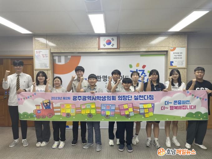 ƯÈ÷ ÇлýµéÀº ÃÖ±Ù À̽´¸¦ ¹Ý¿µÇØ ¡®ÇлýÀαÇÁ¶·Ê¡¯¸¦ ÇÔ²² »ìÆìº¸°í ÀÌ¿¡ ´ëÇÑ »ý°¢À» ³ª´³´Ù. ¶Ç Çлý°ú ±³»ç »Ó¸¸ ¾Æ´Ï¶ó ±³À°°øµ¿Ã¼ ¸ðµÎÀÇ ÀαÇÀ» ¾î¶»°Ô º¸ÀåÇÒ ¼ö ÀÖÀ»Áö ÇлýÀÇȸ º°·Î À̾߱âÇϱ⵵ Çß´Ù. ÀÌÈÄ ÇлýµéÀº ¡®´õ Á¸ÁßÇÏ¸é ´õ ÇູÇÏ´Ù¡¯´Â ÀÇÀå´Ü ¸Þ½ÃÁö¸¦ ´ãÀº ¡®±¤ÁÖ±³À° »ó»ý ¿Â÷¡¯¸¦ ¸¸µå´Â ½Ã°£µµ °¡Á³´Ù.