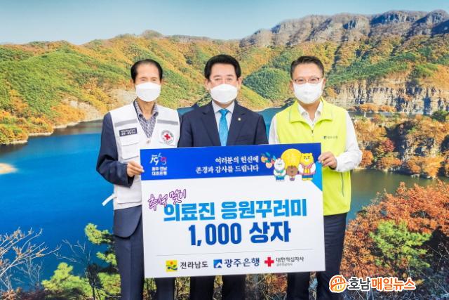 ÀÌ´Â Àü¶ó³²µµ¸¦ ÅëÇØ Àü³²Áö¿ª °¨¿°º´ Àü´ãº´¿ø°ú ¼±º°Áø·á¼Ò¿¡ Àü´ÞµÉ ¿¹Á¤À̸ç, ¿À´Â 17ÀÏ¿¡´Â ¡®ÀÀ¿ø²Ù·¯¹Ì¡¯ 1,000»óÀÚ¸¦ Ãß°¡Á¦ÀÛÇØ ±¤ÁÖ±¤¿ª½Ãû¿¡µµ Àü´ÞÇÒ ¿¹Á¤ÀÌ´Ù.
