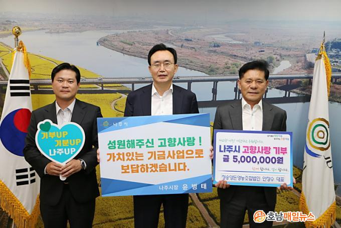 À±º´Å ³ªÁÖ½ÃÀåÀº ¡°Àü³²µµ Àüü Ãà»ê¾÷ ºÐ¾ß¿¡¼µµ ³ªÁֽð¡ Å« ºñÁßÀ» Â÷ÁöÇϰí ÀÖ´Ù¡±¸ç ¡°³ªÁÖ½ÃÀÇ Ãà»ê¾÷ÀÌ Áö¿ª»çȸ¿Í »ó»ýÇϰí Áö¼Ó°¡´ÉÇÑ ¹ßÀüÀ» ÇÒ ¼ö ÀÖµµ·Ï ±â¿©ÇØÁּż °¨»çÇÏ´Ù¡±¶ó°í Àλ縦 ÀüÇß´Ù.