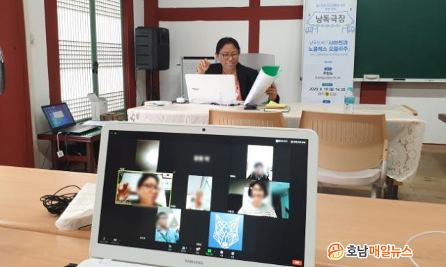 ¹®È°Á ¡®³¶µ¶±ØÀ塯Àº È»óȸÀÇ µµ±¸ÀÎ ÁÜ(ZOOM)À» Ȱ¿ëÇØ °Á¸¦ ¿î¿µÇϰí ÀÖ´Ù. ¸í·û´ç¿¡¼ Á¢¼ÓÇÑ °»ç¿Í ÀÚÅÿ¡¼ Á¢¼ÓÇÑ ¼ö°»ýÀÌ ½Ç½Ã°£À¸·Î ¼·Î ¼ÒÅëÇϸç <»ç¸¶Ãµ°ú ³ëºí·¹½º ¿Àºí¸®ÁÖ>¸¦ ¹ø°¥¾Æ ³¶µ¶Çϰí, Ã¥¿¡ ´ëÇÑ °¨»óÀ» ³ª´©´Â ½Ã°£ÀÌ´Ù. ¶Ç ´Ù¸¥ ¹®È°Á´ ½Ç»ýȰ¿¡¼ ¸¹ÀÌ »ç¿ëÇϴ īī¿ÀÅåÀ» Ȱ¿ëÇØ ¿Â¶óÀÎ ¼ö¾÷¿¡ ´ëÇÑ ¼ö°»ýµéÀÇ ºÎ´ãÀ» ÁÙ¿´´Ù.
