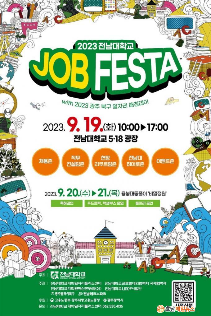 9¿ù 19ÀÏ ¿ÀÀü 10½Ã Çг» 5¡¤18±¤Àå ÀÏ´ë¿¡¼´Â Àü³²´ë ´ëÇÐÀÏÀÚ¸®Ç÷¯½º¼¾ÅÍ(¼¾ÅÍÀå ³²È£Á¤ ±³¼ö)°¡ ÁÖ°üÇÏ´Â ¡®2023 Àü³²´ëÇб³ Àâ Æä½ºÅ¸¡¯(JOB FESTA)°¡ ¿¸®°í, Çг» ¿ëÁö°ü¿¡¼´Â ÀÌ¿Í ¿¬°èÇÑ ¡®2023 ºÏ±¸ ÀÏÀÚ¸®¸Åε¥ÀÌ¡¯°¡ ±¤Áֽà ºÏ±¸(±¸Ã»Àå ¹®ÀÎ) ÁÖ°üÀ¸·Î ¿¸°´Ù.