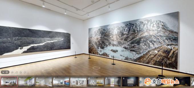 Àü³²±¹Á¦¼ö¹¬ºñ¿£³¯·¹ °ø½Ä ´©¸®Áý(http://www.sumukbiennale.kr/)¿¡¼ °ü¶÷ °¡´ÉÇÑ ¡®°¡»óÇö½Ç Àü½Ã¡¯´Â ¿Â¶óÀÎ»ó¿¡ Àü½Ã°üº° ½ÇÁ¦ Àü½Ã Àå¸éÀ» ±¸ÇöÇÑ °ÍÀÌ´Ù. ½Ã¡¤°ø°£ Á¦¾à ¾øÀÌ ¾ðÁ¦, ¾îµð¼³ª Àü½Ã¿Í ÀÛǰÀ» ÇöÀå°¨ ÀÖ°Ô °¨»óÇÒ ¼ö ÀÖ´Ù.
