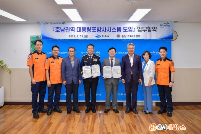 ¿©¼ö½Ã(½ÃÀå Á¤±â¸í)´Â Áö³ 15ÀÏ Áß¾Ó119±¸Á¶º»ºÎ¿Í »ç¾÷ºÎÁö È®º¸¿Í ¹× ÇàÁ¤Áö¿ø µîÀ» Æ÷ÇÔÇÑ ¡®È£³²±Ç¿ª ´ë¿ë·®Æ÷ ¹æ»ç½Ã½ºÅÛ¡¯ µµÀÔ ¾÷¹«Çù¾àÀ» ü°áÇß´Ù°í ¹àÇû´Ù.