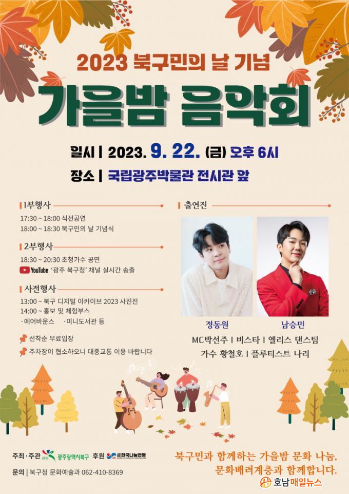 ÀÌ¾î ¿¸®´Â ºÏ±¸¹Î °¡À»¹ã À½¾Çȸ¿¡¼´Â ÁֹεéÀÇ ÈïÀ» µ¸¿ì°í °¡À»¹ã ³¶¸¸À» ¸¸³£ÇÒ ¼ö ÀÖ´Â Á¤µ¿¿ø, ³²½Â¹Î µî ÃÊû °¡¼öÀÇ ÃàÇÏ °ø¿¬ÀÌ ÆîÃÄÁø´Ù.