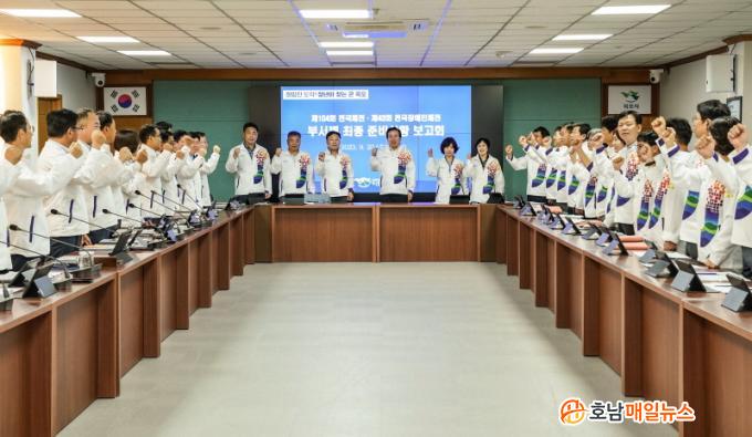 À̳¯ º¸°íȸ´Â ¹ÚÈ«·ü ¸ñÆ÷½ÃÀå ÁÖÀç·Î Àü ºÎ¼ÀåµéÀÌ Âü¼®ÇÑ °¡¿îµ¥ Àü±¹Ã¼ÀüÃßÁø´ÜÀåÀÇ ÃѰý º¸°í¿¡ ÀÌ¾î ºÎ¼º° Áغñ»óȲ Á¡°ËÀÌ À̾îÁ³´Ù. ƯÈ÷, ´ëȸ ±â°£ ¸ñÆ÷¸¦ ã´Â ¼±¼ö´Ü°ú °ü¶÷°´µéÀ» À§ÇÑ ¼÷¹Ú․À½½Ä․±³Åë․ÁÖÂ÷ ´ëÃ¥À» Áß½ÉÀ¸·Î µµ½É ¹Ì°üÁ¤ºñ, ¹®È‧¿¹¼úÇà»ç °³ÃÖ µîÀ» ÃÖÁ¾ Á¡°ËÇß´Ù.