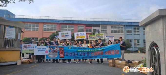 À̳¯ Ä·ÆäÀο¡´Â °ü°èÀÚ 50¿© ¸íÀÌ Âü¿©ÇØ ¡°µîÇϱ³ ½Ã º¸Çà Áß ½º¸¶Æ®Æù »ç¿ë±ÝÁö¡±, ¡°È¾´Üº¸µµ¿¡¼´Â ¸ØÃç¼, »ìÇǰí, °Ç³Ê¿ä¡± µî ¾î¸°ÀÌ ±³Åë¾ÈÀü ¼öÄ¢À» ¾È³»Çϰí, È«º¸Áö¿Í È«º¸¹°Ç°(¾î¸°ÀÌ¿ë ¿ì»ê)À» ¹èºÎÇß´Ù.