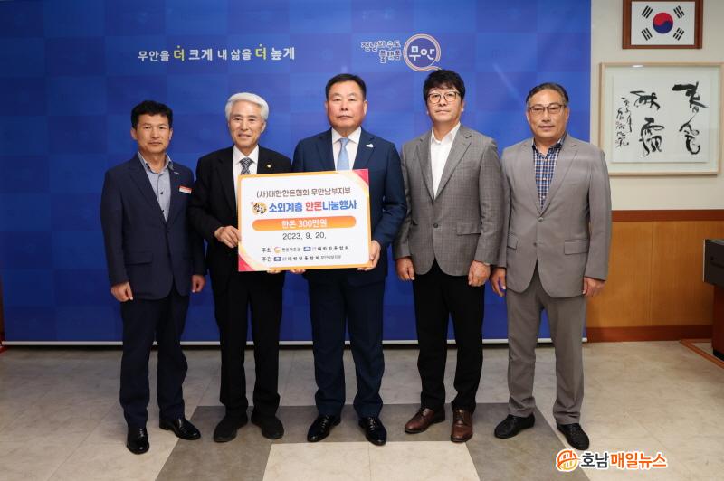 À̹ø Çà»ç´Â (»ç)´ëÇÑÇѵ·Çùȸ ¹«¾È³²ºÎÁöºÎ(ÁöºÎÀå ½Å±æ¿À) ȸ¿ø 19¸íÀÌ Âü¿©ÇßÀ¸¸ç, Àú¼ÒµæÃþ°ú »çȸº¹Áö½Ã¼³ÀÇ Ãß¼®¸íÀý º¸³»±â¿¡ º¸ÅÆÀÌ µÇ°íÀÚ µÅÁö°í±â 2kg 137¹Ú½º¸¦ ¹«¾È±º¿¡ Àü´ÞÇß´Ù.