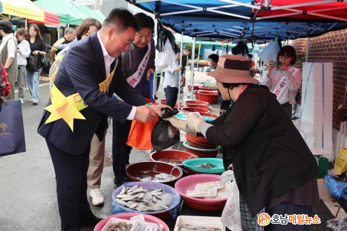 ÇÑÆí, ±è»ê ±º¼ö´Â ¡°°í±Ý¸®¡¤°í¹°°¡, °è¼ÓµÇ´Â °æ±âħü·Î ¾î·Á¿òÀ» °Þ°í ÀÖ´Â ¼Ò»ó°øÀÎÀ» µ½°í, Ãß¼® ¸íÀýÀÇ Ç³¼ºÇÔÀ» µÇã±æ ¹Ù¶ó´Â ¸¶À½À¸·Î Àü Á÷¿øÀÌ Âü¿©ÇÏ´Â ¶æ±íÀº Çà»ç¡±¶ó¸ç ¡°À̹ø ½ÃÀå À庸±â Çà»ç¸¦ ÅëÇØ ÀüÅë½ÃÀåÀÇ È°·ÂÀ» ³ô¿©, °æÁ¦ÀûÀ¸·Î ¾î·Á¿òÀ» °Þ°í ÀÖ´Â Áö¿ª »óÀε鿡°Ô µµ¿òÀÌ µÇ±â¸¦ ±â´ëÇÑ´Ù¡±°í ¹àÇû´Ù.